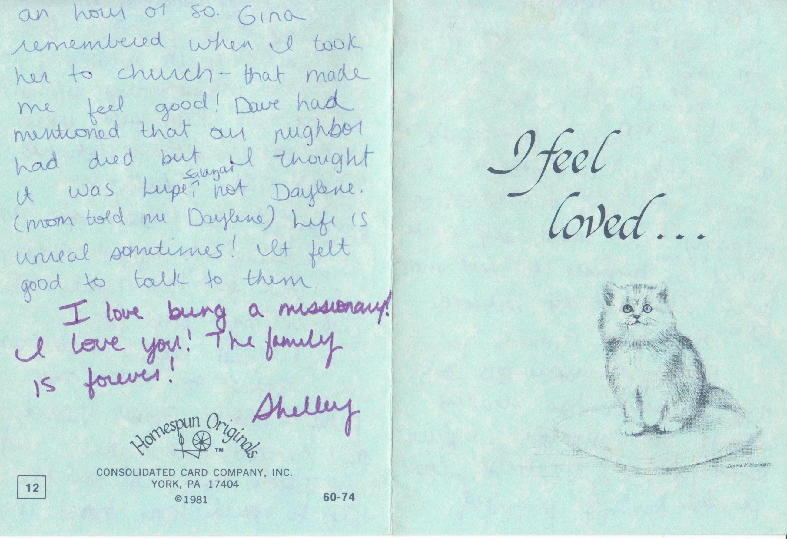 Since living in Sacramento, Phyllis and I have had missionaries for supper once a week. (editor’s note: I’m not sure when this was, because I don’t remember having them this often.) For years, Phyllis has always liked to cook for them and Della did it also. Since I have been Ward Mission Leader, it has been convenient to have them for dinner before we have gone on splits with them. Some of them are so spiritual, I love being with them. Others are not serious enough about their work and have feelings about frivolous things. Some of them I love as if they were my sons.