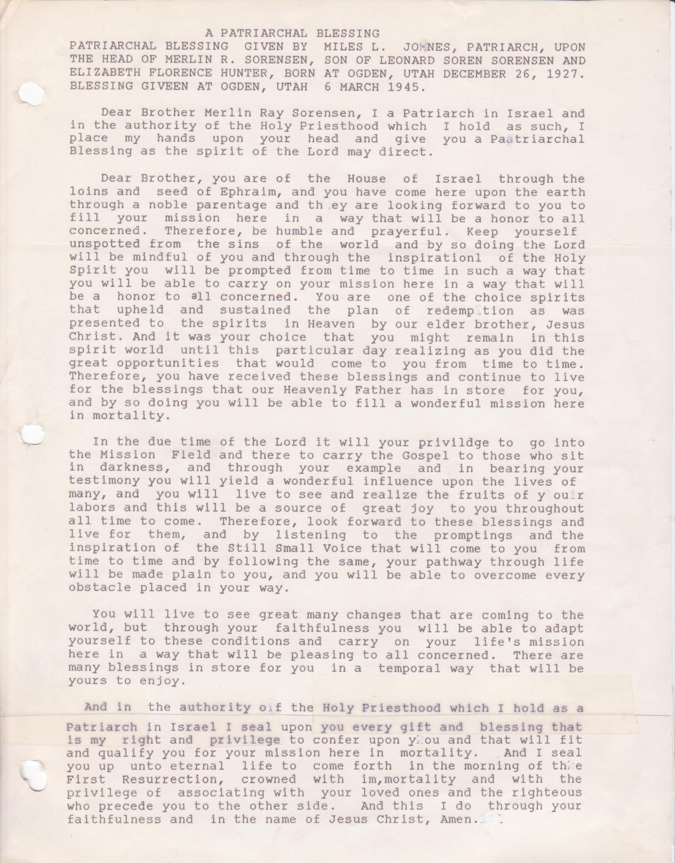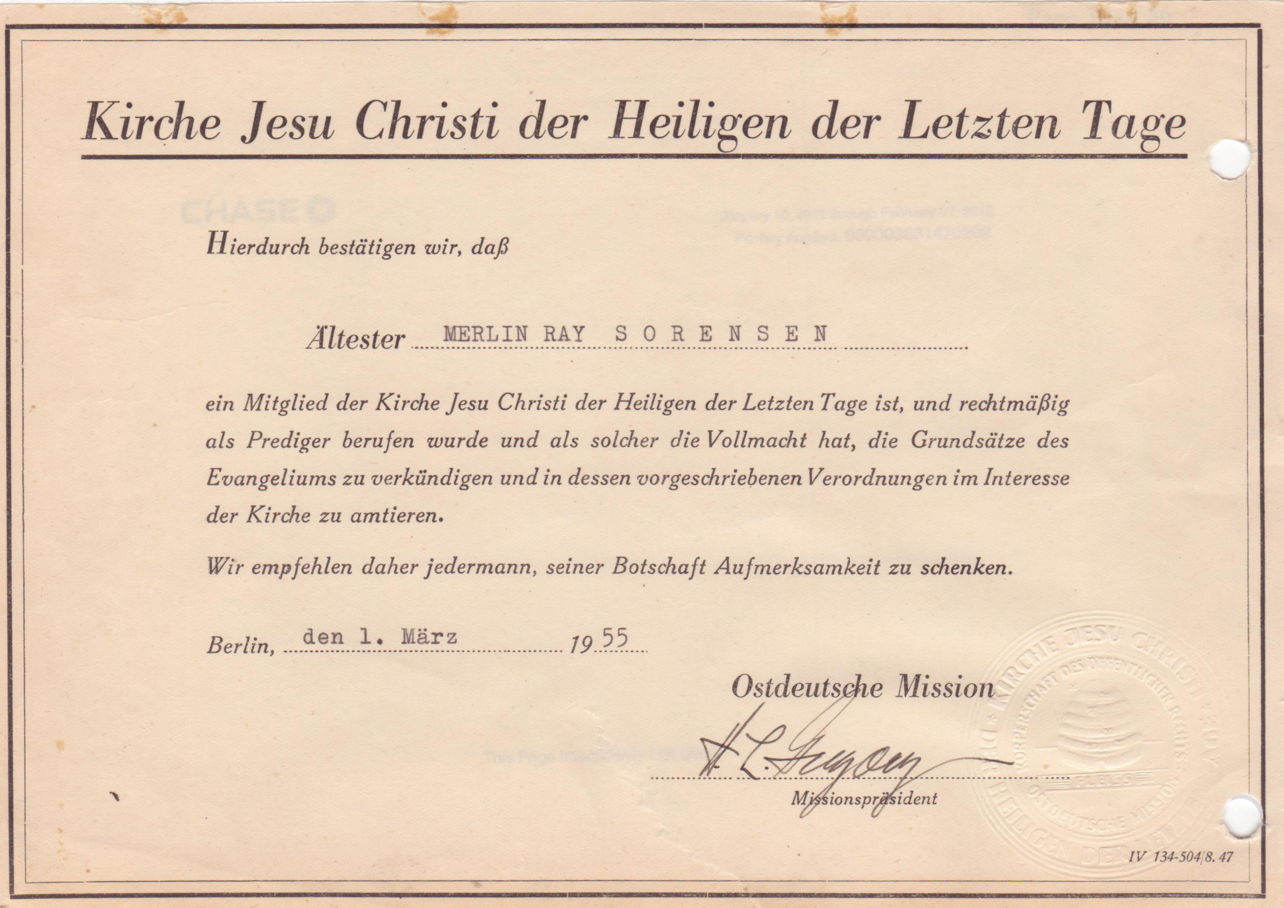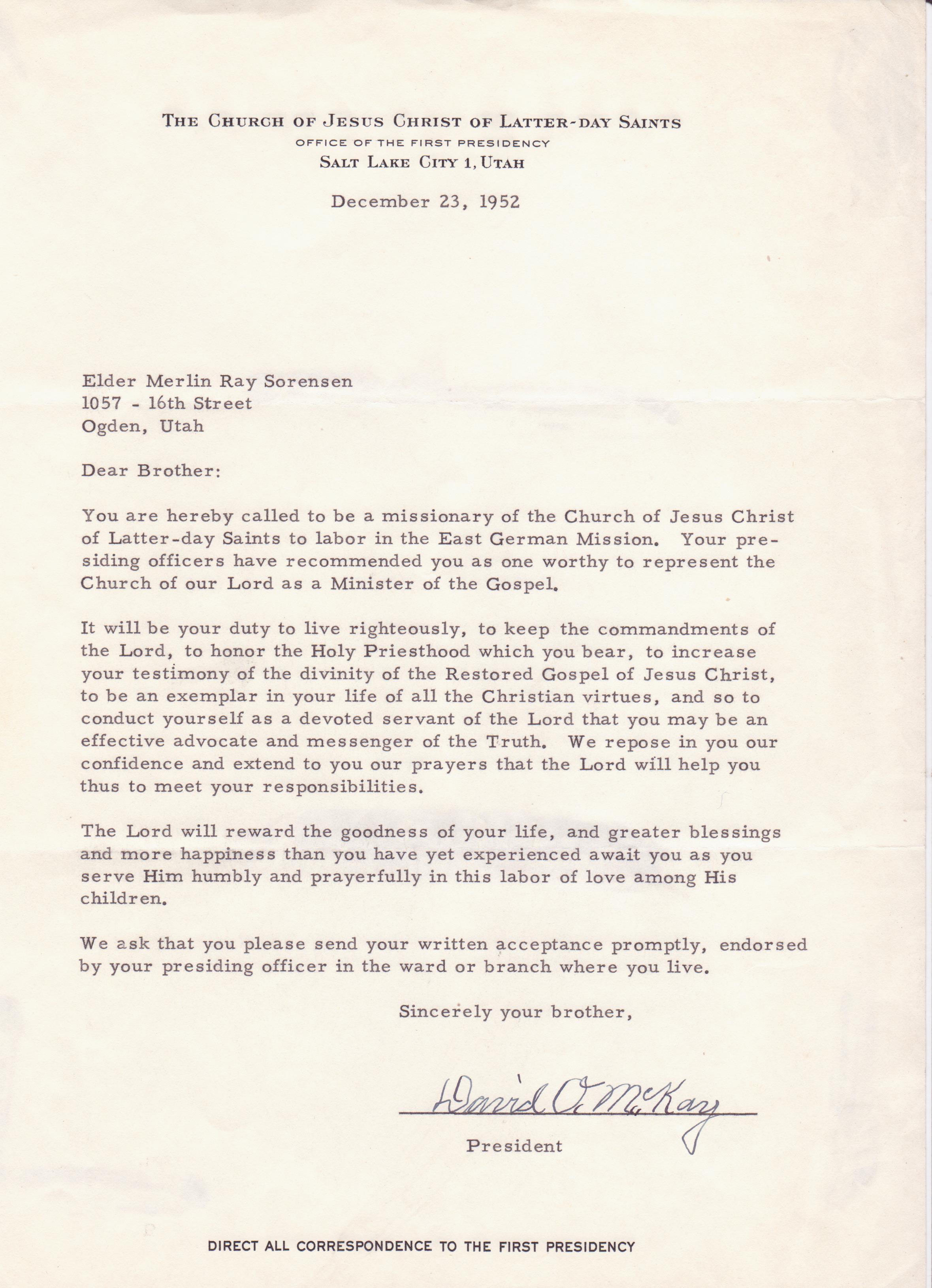 My patriarchal blessing mentions that I would be called to the mission field as a missionary. When the call came it was most highly received. Since I had studied German as a student at BYU, I was excited now to receive the call.