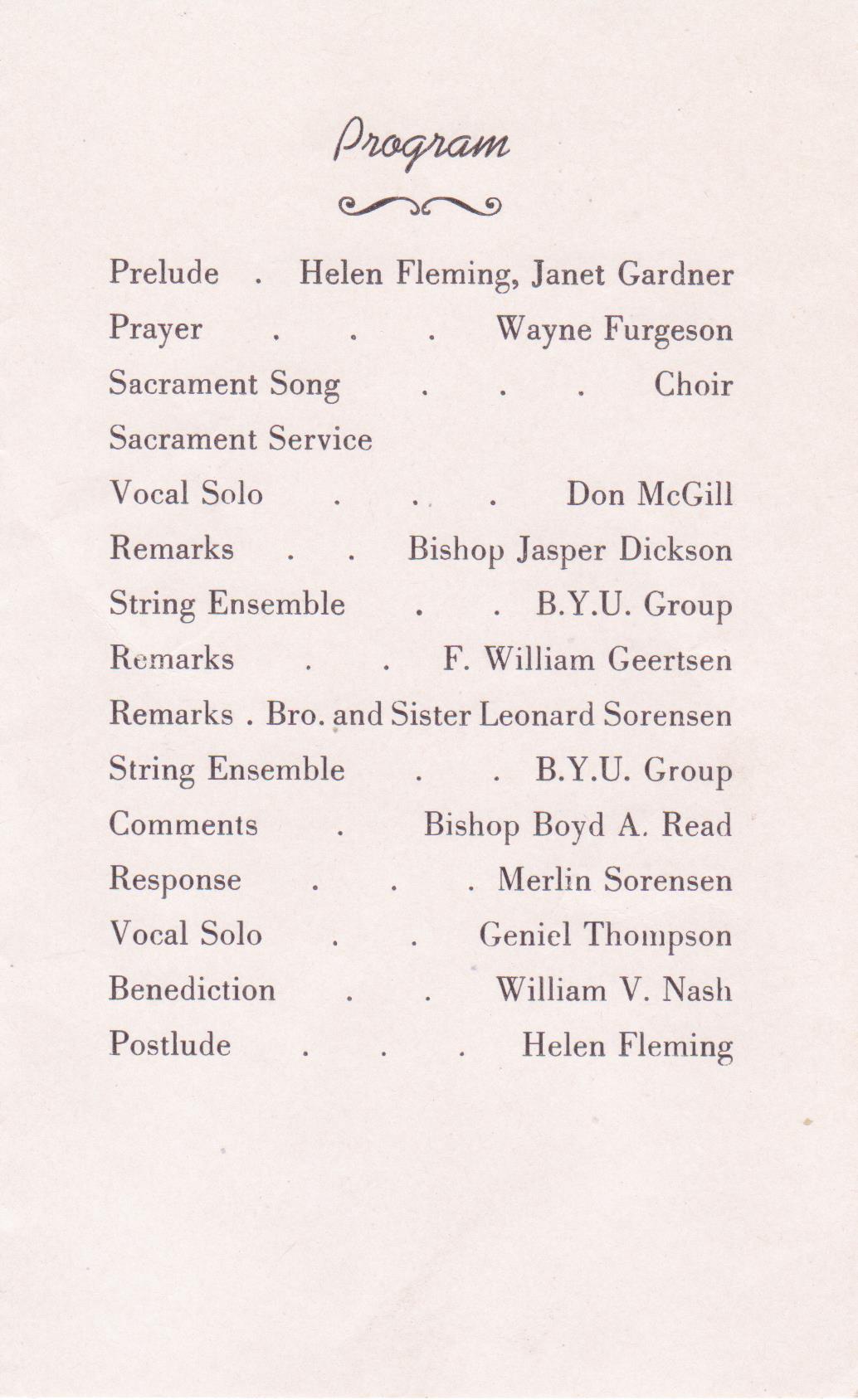 Tonight we had 12 contacts present at our Sacrament Meeting! It made a total of 39 present. The largest it has ever been since I’ve been here. It seems as if our presence has really paid off. We had a musical number on the violin, organ and voice doing “Calvary.” I sang the vocal part. After the meeting many were impressed and said they would come again.